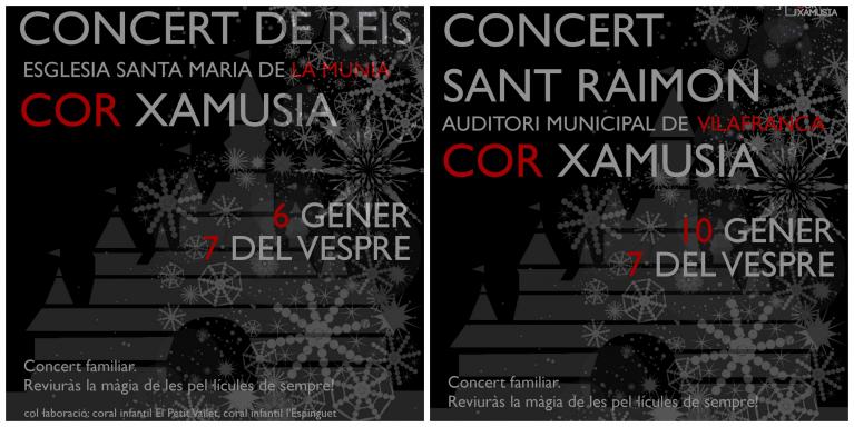 Com cada any per aquestes dates, el Cor Xamusia us volem oferir uns concerts amb voluntat d’alimentar l’esperit amb melodies poc habituals, o bé llunyanes, o bé oblidades, diferents de les que s’acostumen a sentir entre Advent i la Candelera. Agafeu les agendes i anoteu les següents dates: